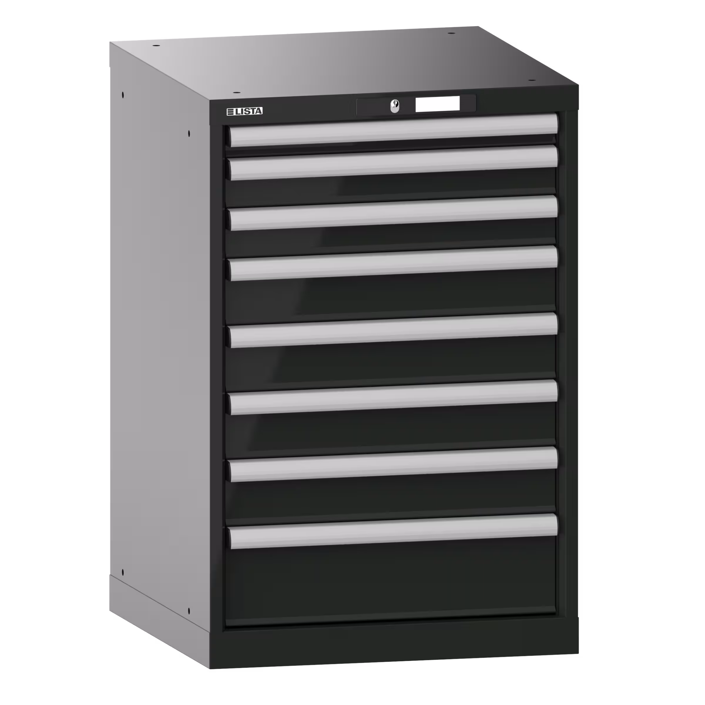 Drawer cabinet 27x27E (WxDxH) 564x572x850mm 8 drawers (1x50/2x75/4x100/1x150) 75kg KEY Lock Black NCS S 9000-N