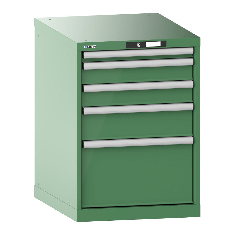 Drawer cabinet 27x36E (WxDxH) 564x725x800mm 5 drawers (1x50/2x100/1x150/1x300) 75kg KEY Lock Reseda green RAL 6011