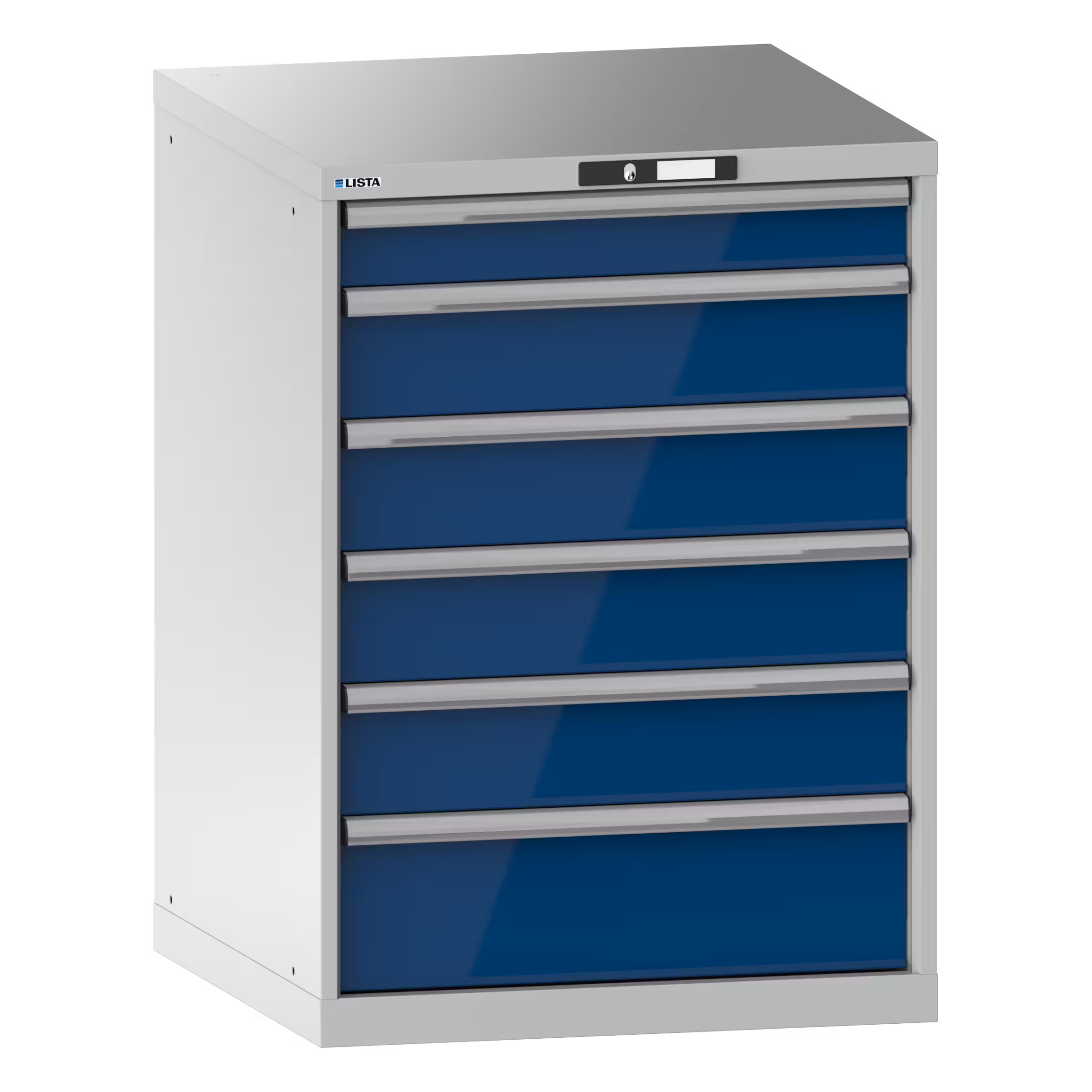 Drawer cabinet 36x36E (WxDxH) 717x725x1000mm 6 drawers (1x100/4x150/1x200) 75kg KEY Lock Light grey RAL 7035 / Signal blue RAL 5005