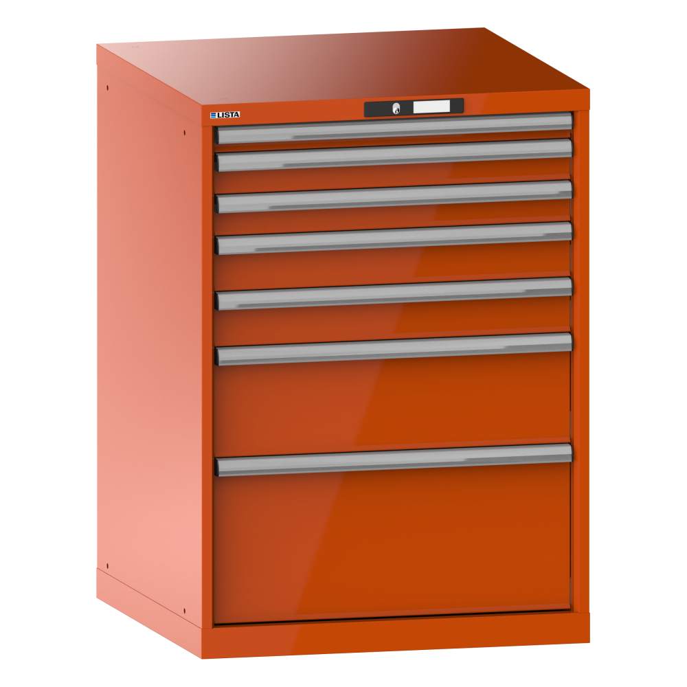 Drawer cabinet 36x36E (WxDxH) 717x725x1000mm 7 drawers (1x50/2x75/2x100/1x200/1x300) 75kg KEY Lock Orange RAL 2004