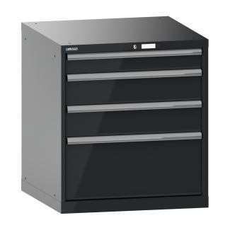 Drawer cabinet 36x36E (WxDxH) 717x725x800mm 4 drawers (1x100/2x150/1x300) 75kg AUTO Lock Anthracite grey RAL 7016