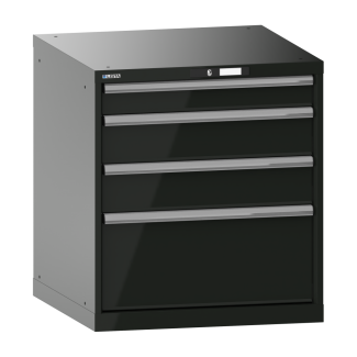 Drawer cabinet 36x36E (WxDxH) 717x725x800mm 4 drawers (1x100/2x150/1x300) 75kg AUTO Lock Black NCS S 9000-N