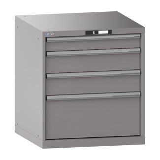 Drawer cabinet 36x36E (WxDxH) 717x725x800mm 4 drawers (1x100/2x150/1x300) 75kg AUTO Lock Grey aluminium RAL 9007