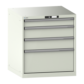 Drawer cabinet 36x36E (WxDxH) 717x725x800mm 4 drawers (1x100/2x150/1x300) 75kg AUTO Lock Grey-white RAL 9002