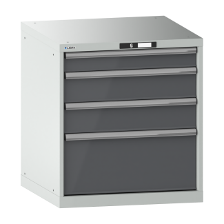 Drawer cabinet 36x36E (WxDxH) 717x725x800mm 4 drawers (1x100/2x150/1x300) 75kg AUTO Lock Light grey RAL 7035 / Grey metallic NCS S 6502-B
