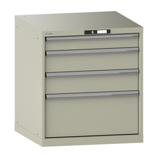 Drawer cabinet 36x36E (WxDxH) 717x725x800mm 4 drawers (1x100/2x150/1x300) 75kg AUTO Lock Pebble grey RAL 7032