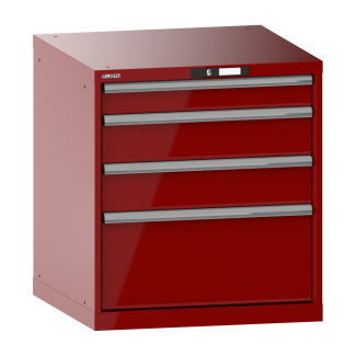 Drawer cabinet 36x36E (WxDxH) 717x725x800mm 4 drawers (1x100/2x150/1x300) 75kg AUTO Lock Ruby red RAL 3003