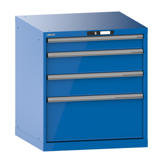 Drawer cabinet 36x36E (WxDxH) 717x725x800mm 4 drawers (1x100/2x150/1x300) 75kg AUTO Lock Sky blue RAL 5015
