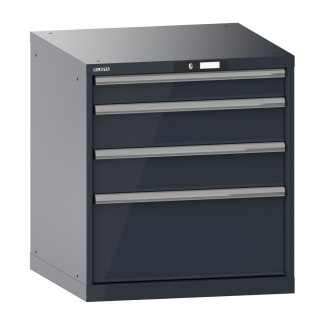 Drawer cabinet 36x36E (WxDxH) 717x725x800mm 4 drawers (1x100/2x150/1x300) 75kg AUTO Lock Slate grey RAL 7015