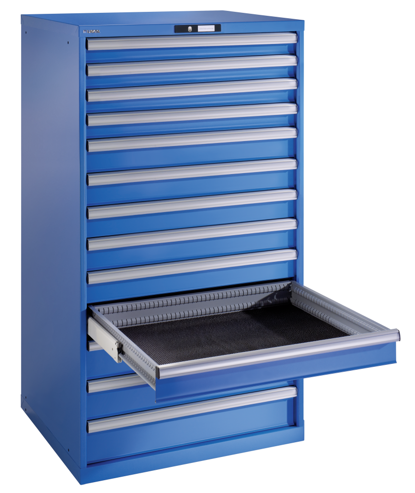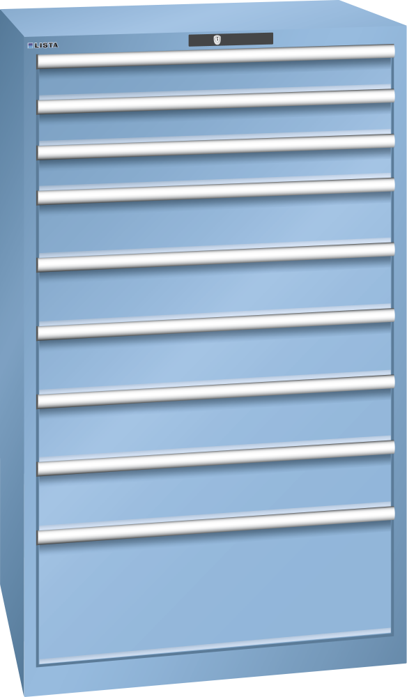 Drawer cabinet 45x36E (WxDxH) 870x725x1450mm 9 drawers (3x100/5x150/1x300) 200kg RFID Lock Sky blue RAL 5015