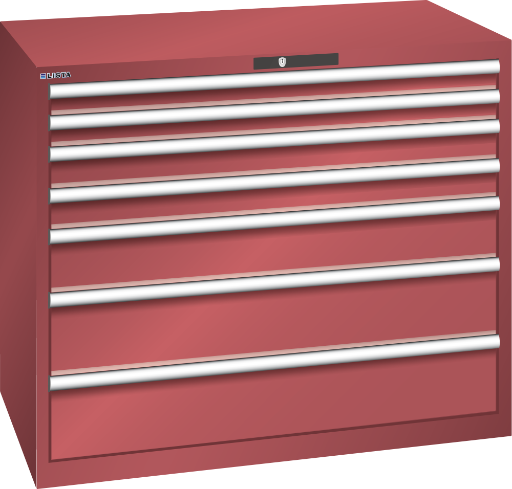 Drawer cabinet 64x36E (WxDxH) 1193x725x1000mm 7 drawers (2x75/2x100/1x150**/2x200**) 75/**200kg CODE Lock Ruby red RAL 3003