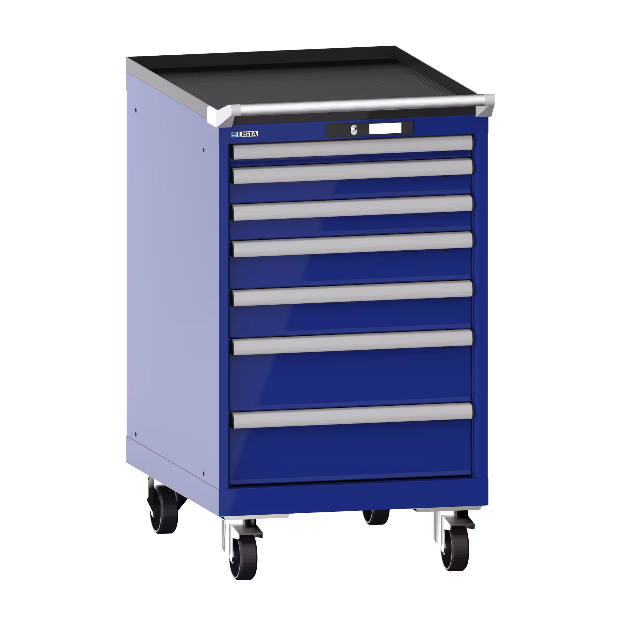 Drawer cabinet mobile 27x36E (WxDxH) 564x725x990mm 7 drawers (1x50/2x75/2x100/2x150) 75kg nylon castors Ø100mm RFID Lock Ultramarine blue RAL 5002