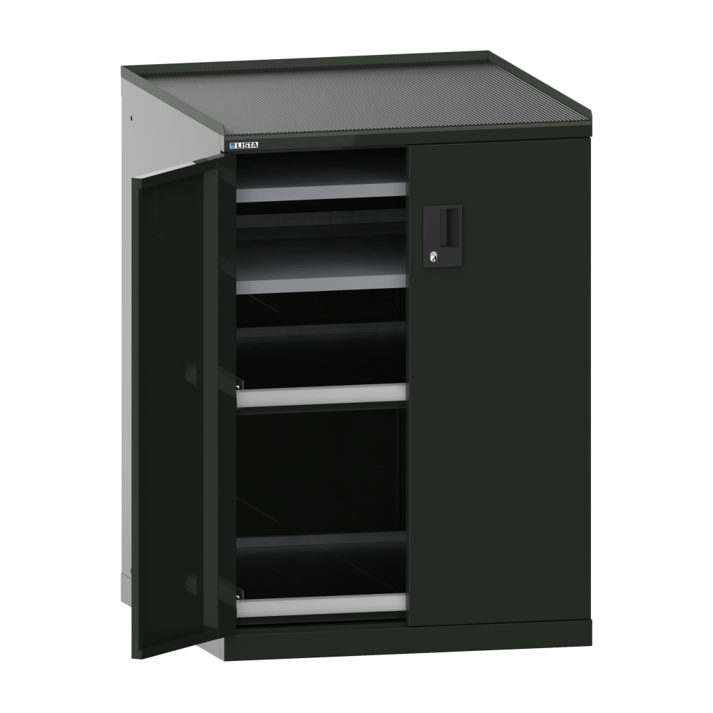 Drawer cabinet with hinged doors 36x36E (WxDxH) 717x753x1020mm 2 pull-out shelves (75kg), 2 shelves (200kg) RFID Lock Black NCS S 9000-N