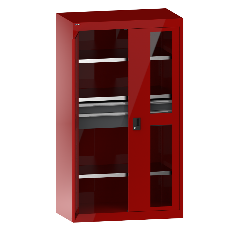 Doors with viewing window: The UV-resistant acrylic glass is break-proof and enables improved workstation organisation.
