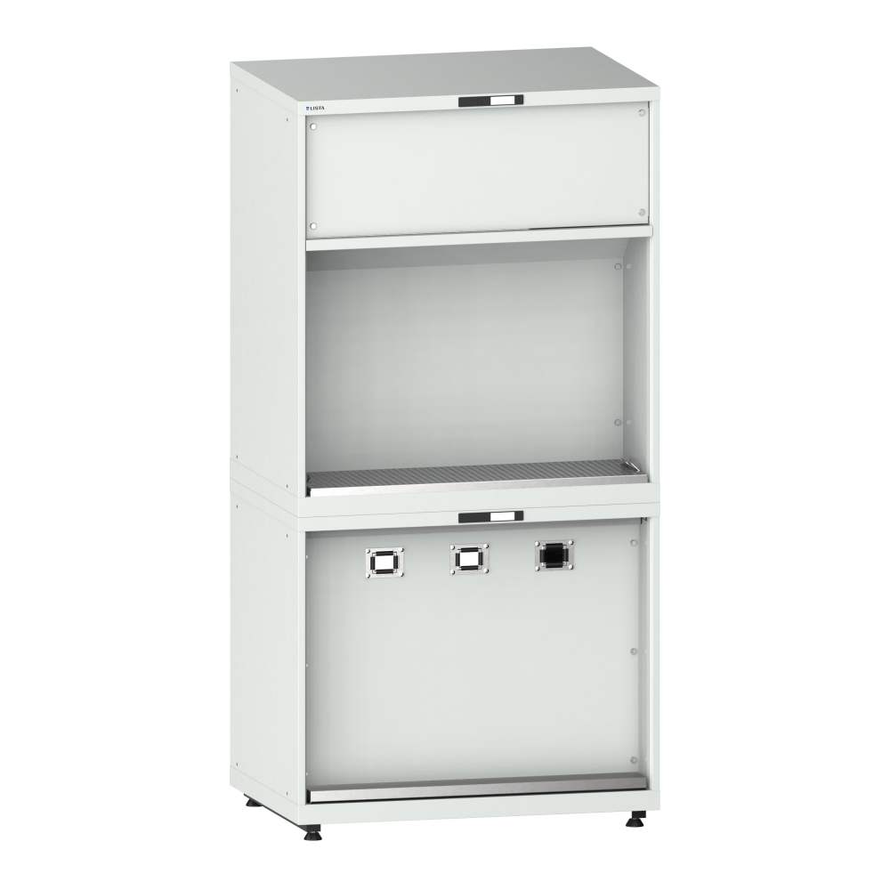 Media supply tower 54x36E (WxDxH) 1023x725x2045-2090mm 6 x hose ports/2 x drip tray incl. levelling foot set for covers (4 x feet, 45-90mm) and mounting set Pale grey NCS S 2000-N