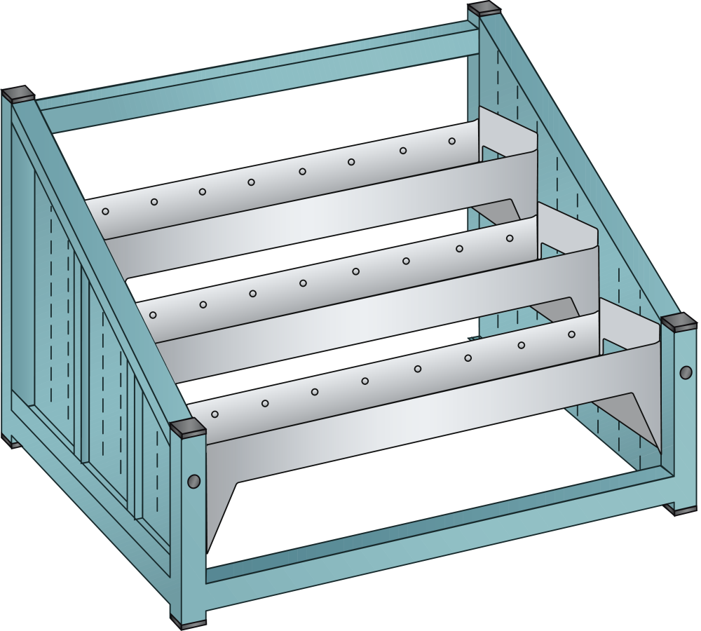 NC bench stand: Including 3 tool cradles, 3 pairs of frame supports, horizontal. Specification: Steel tube. Colour: according to colour chart.