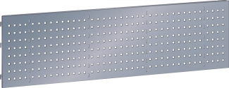 Rear panels plain or perforated: The upper part of the support pillars can be assembled partially or completely with rear panels. All rear panels can be attached to the support pillars without screws. Rear panels with square perforations 10 × 10 mm, 38 mm division and slots 380 mm apart for accommodating storage shelves and can holders. Specification: sheet steel. Colour: according to colour chart.