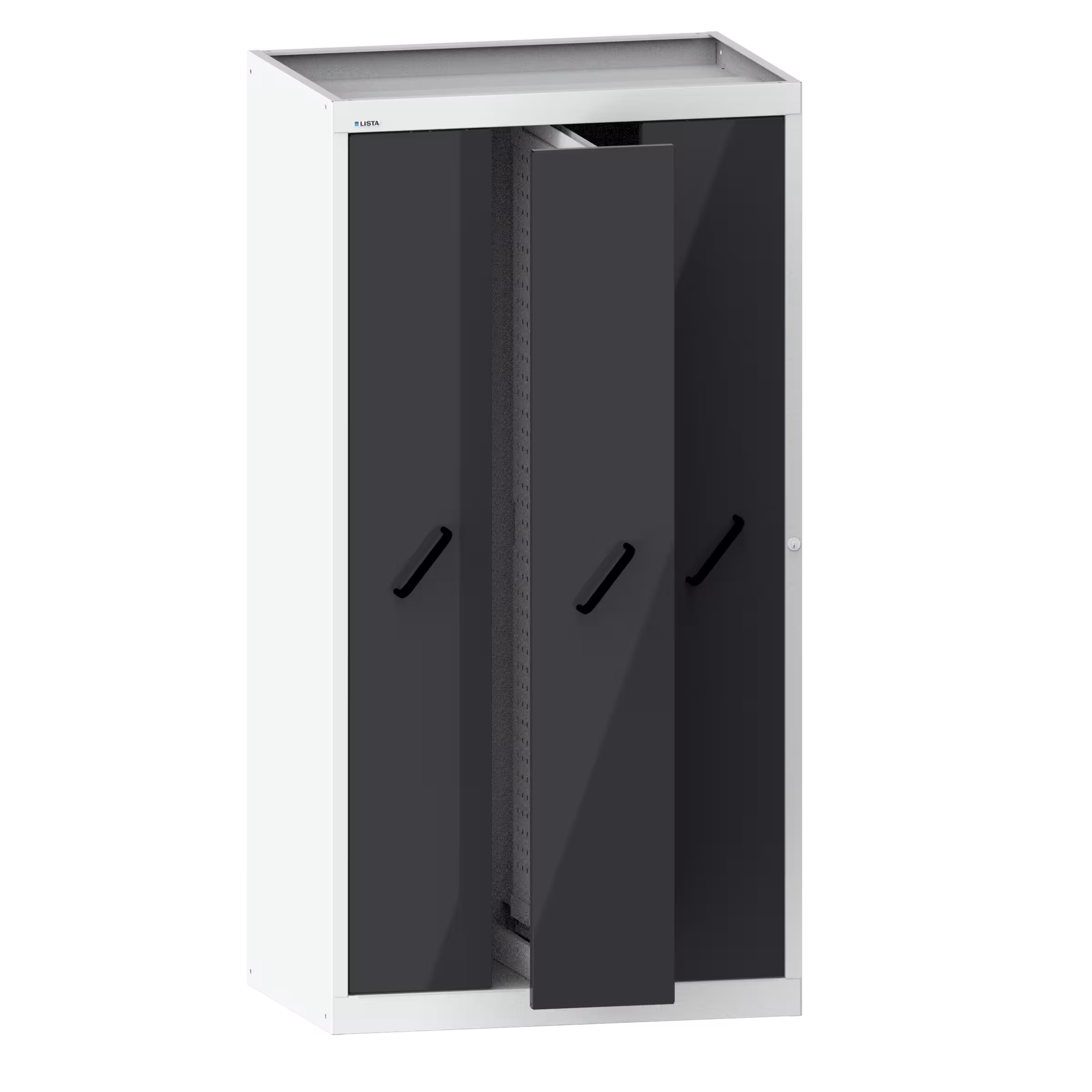 with adjustable shelves, pegboards and shelves for tool holders for NC storage in increments of 50 mm