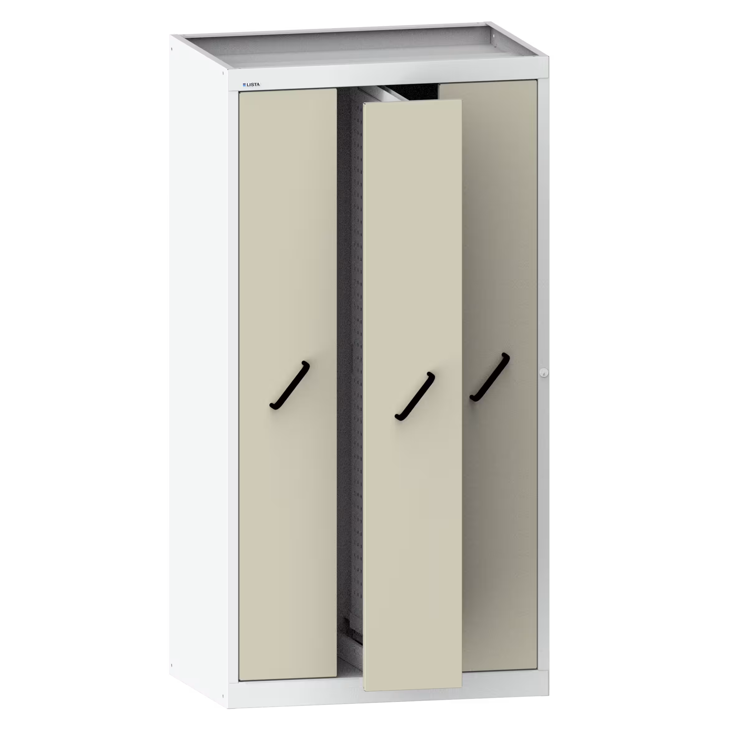 Vertical pull-out cabinet with front covers (WxDxH) 1000x695x1950mm 3 pull-outs with perforated rear panels Light grey RAL 7035 / Pebble grey RAL 7032