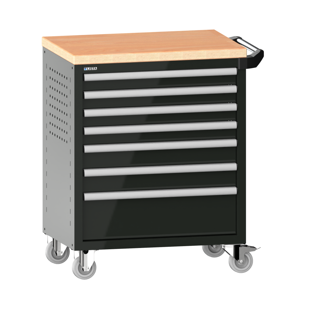 thanks to the smooth-running fixed and swivel castors (two of each) in solid rubber