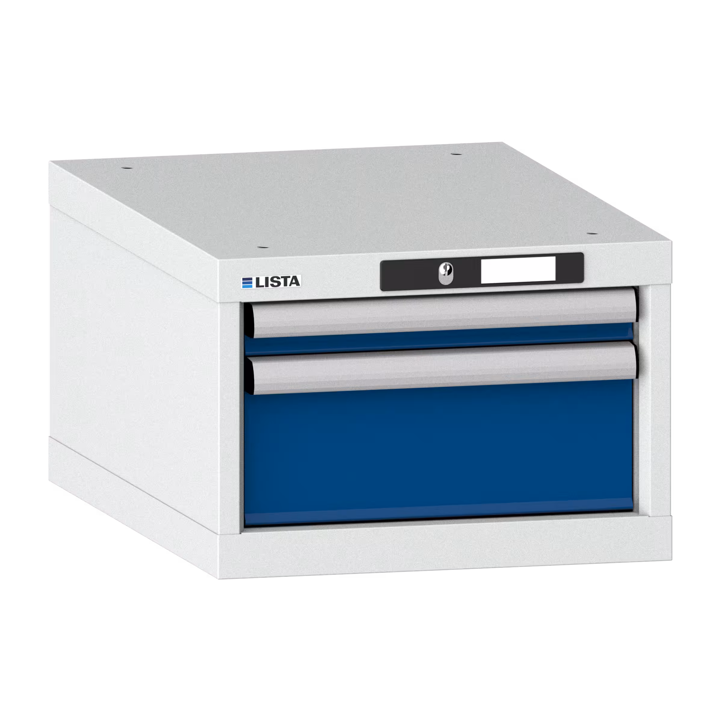 Armario de cajones 18x27E (AxPxA) 411x572x283mm 2 cajones (1x50/1x150) 75kg CODE Lock Gris luminoso RAL 7035 / Azul señales RAL 5005