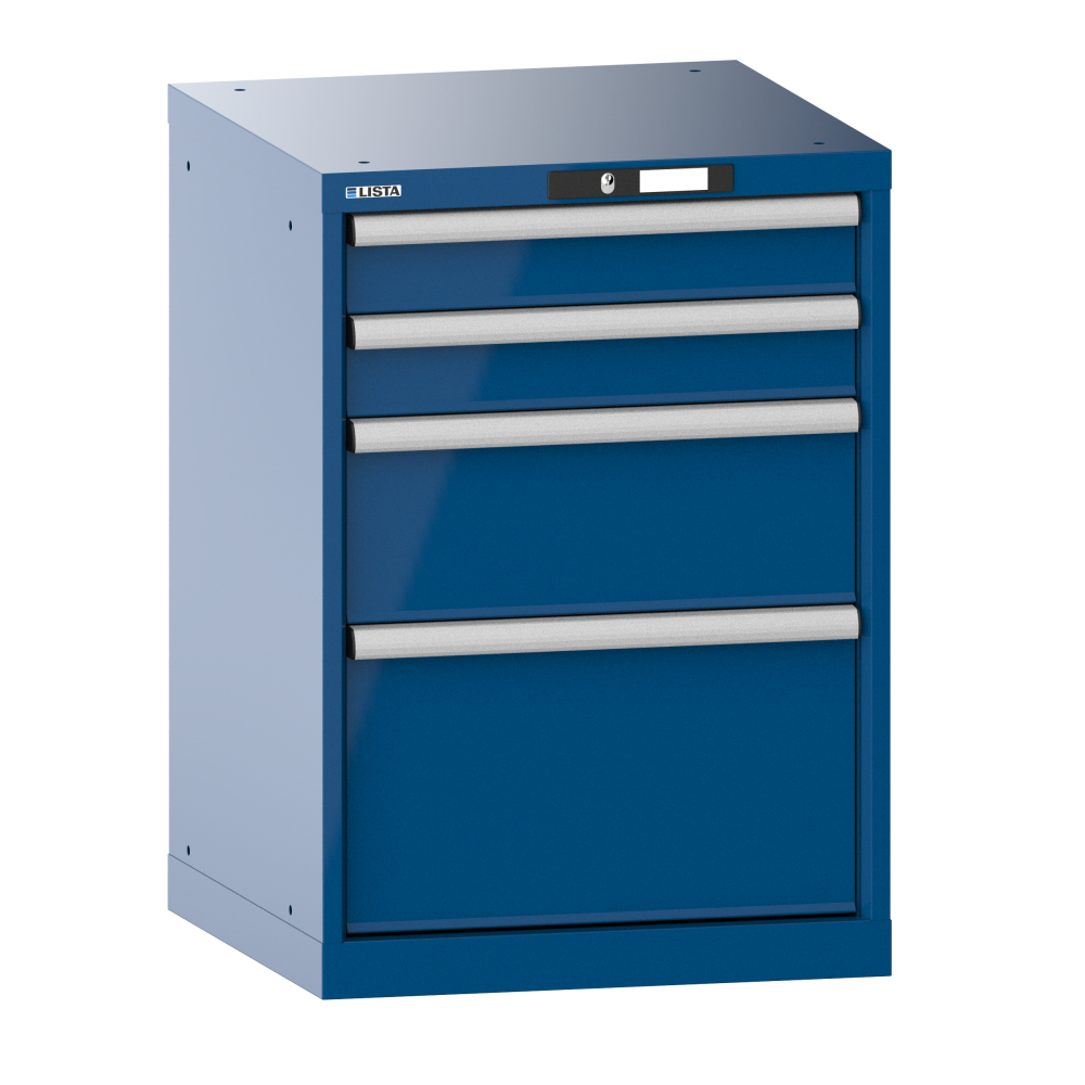 Armario de cajones 27x27E (AxPxA) 564x572x800mm 4 cajones (2x100/1x200/1x300) 75kg AUTO Lock Azul genciana RAL 5010