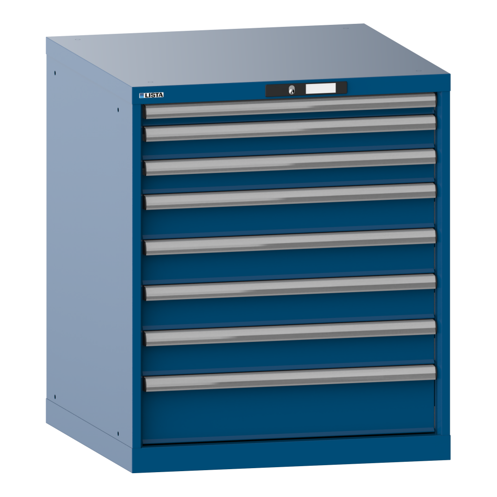 Armario de cajones 36x36E (AxPxA) 717x725x850mm 8 cajones (1x50/2x75/4x100/1x150) 75kg KEY Lock Azul capri RAL 5019