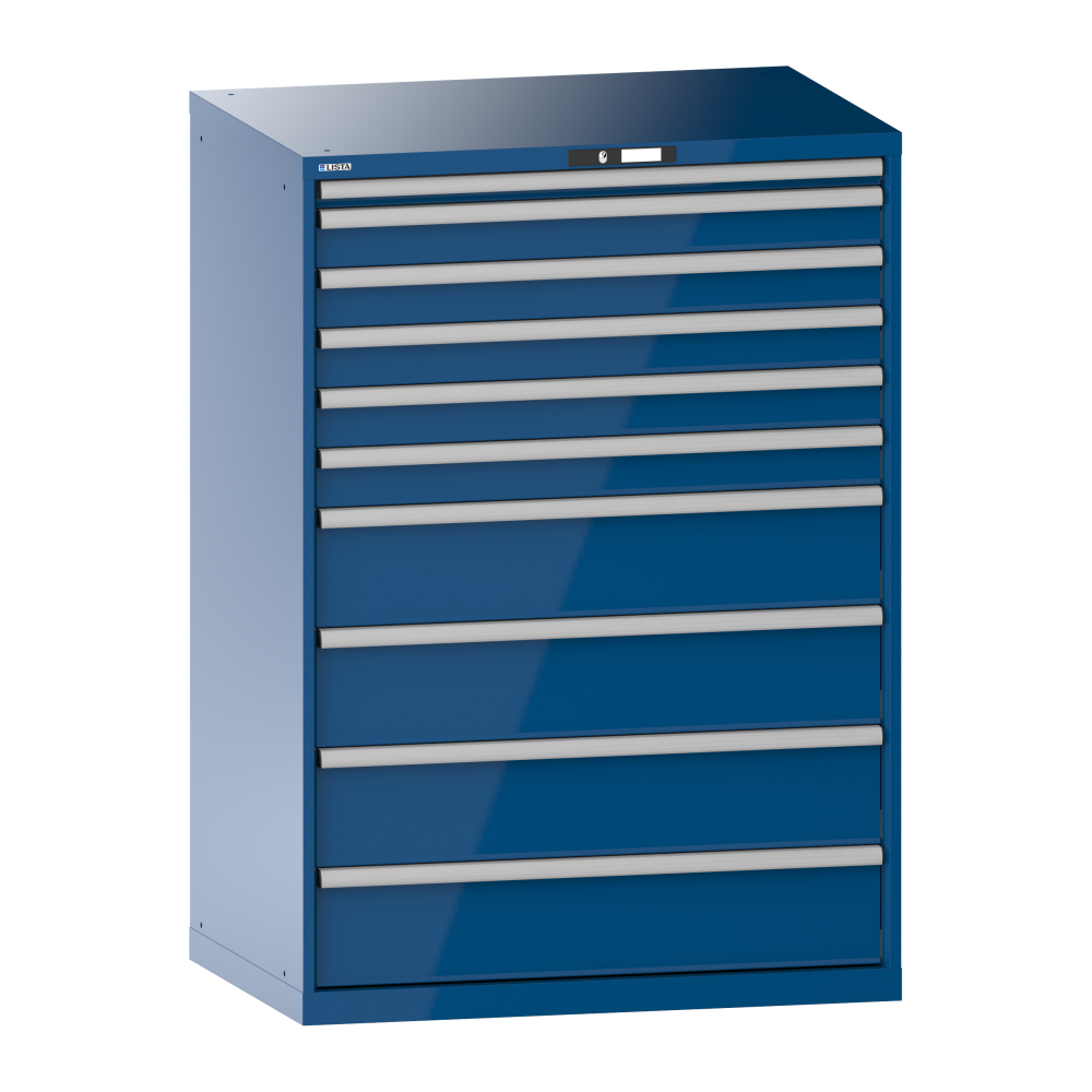 Armario de cajones 54x36E (AxPxA) 1023x725x1450mm 10 cajones (1x50*/5x100/4x200) *75/200kg AUTO Lock Azul genciana RAL 5010