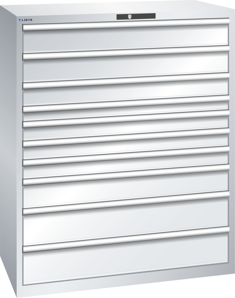 Armario de cajones 64x36E (AxPxA) 1193x725x1450mm 10 cajones (2x150/1x125/1x75/3x100/1x150/2x200) 200kg AUTO Lock Gris claro NCS S 2000-N
