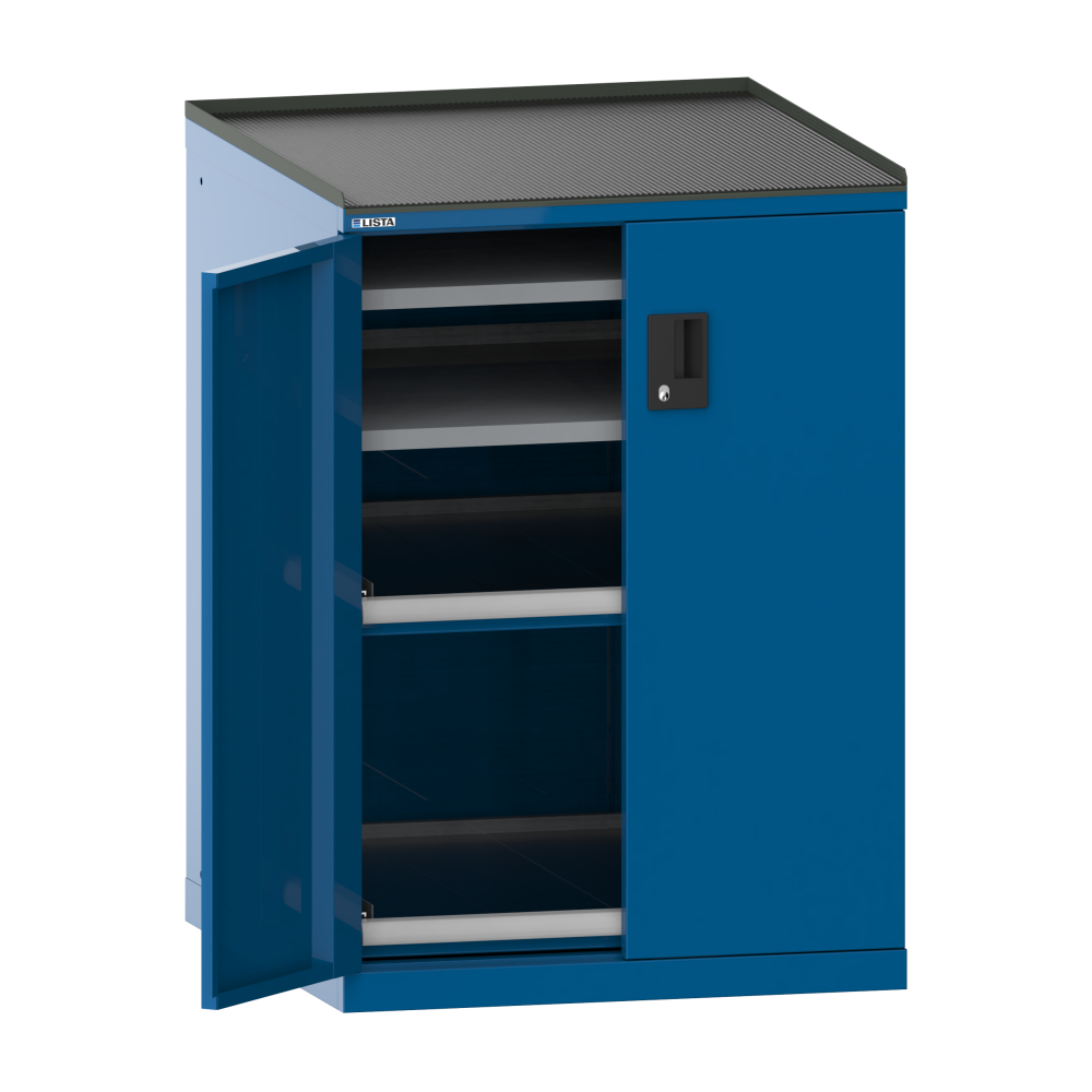 Puertas batientes: las puertas batientes de chapa de acero incorporan un cierre de barra de dos puntos y opcionalmente se pueden equipar con los sistemas de cierre KEY Lock, CODE Lock o RFID Lock. El ángulo de abertura máximo es 235 grados.
