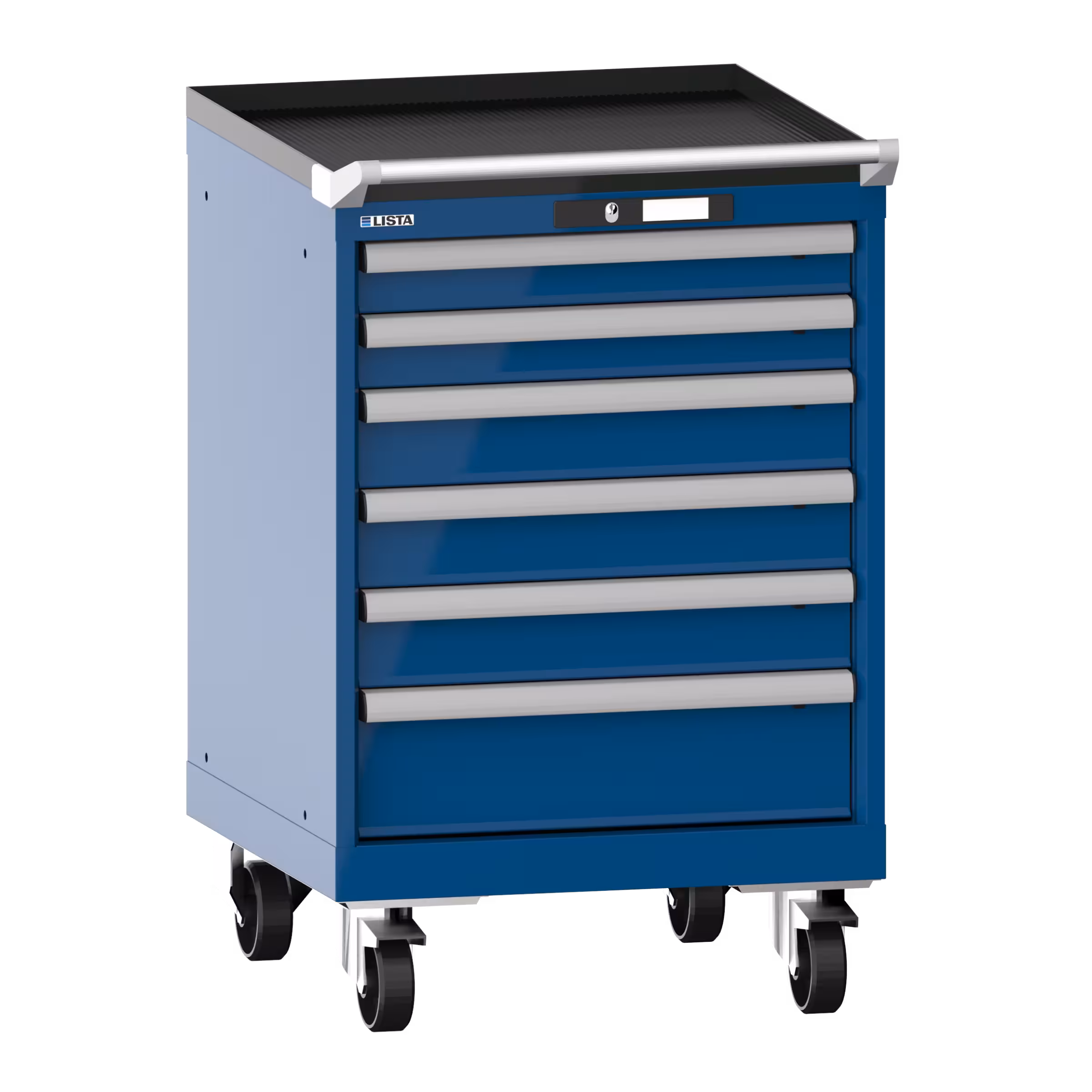 Armario de cajones móviles 27x27E (AxPxA) 564x572x890mm 6 cajones (2x75/3x100/1x150) 75kg ruedas de nailon Ø100mm CODE Lock Azul genciana RAL 5010
