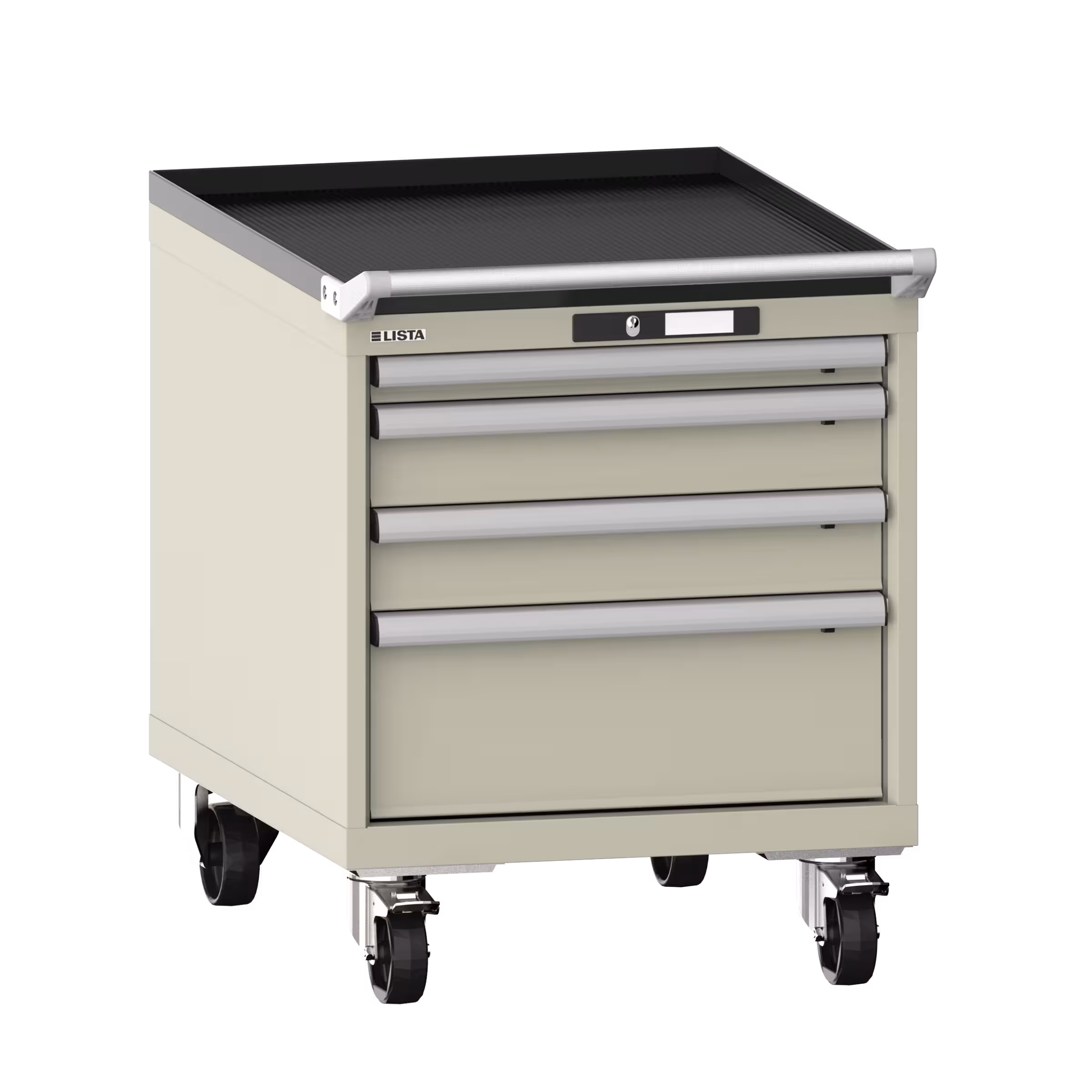 Armario de cajones móviles 27x36E (AxPxA) 564x725x723mm 4 cajones (1x50/2x100/1x200) 75kg ruedas de nailon Ø100mm KEY Lock Gris guijarro RAL 7032