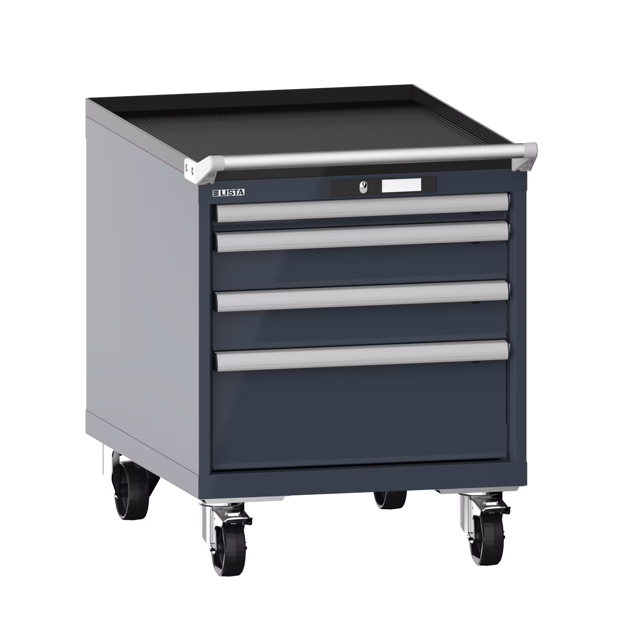 Armario de cajones móviles 27x36E (AxPxA) 564x725x723mm 4 cajones (1x50/2x100/1x200) 75kg ruedas de nailon Ø100mm KEY Lock Gris pizarra RAL 7015
