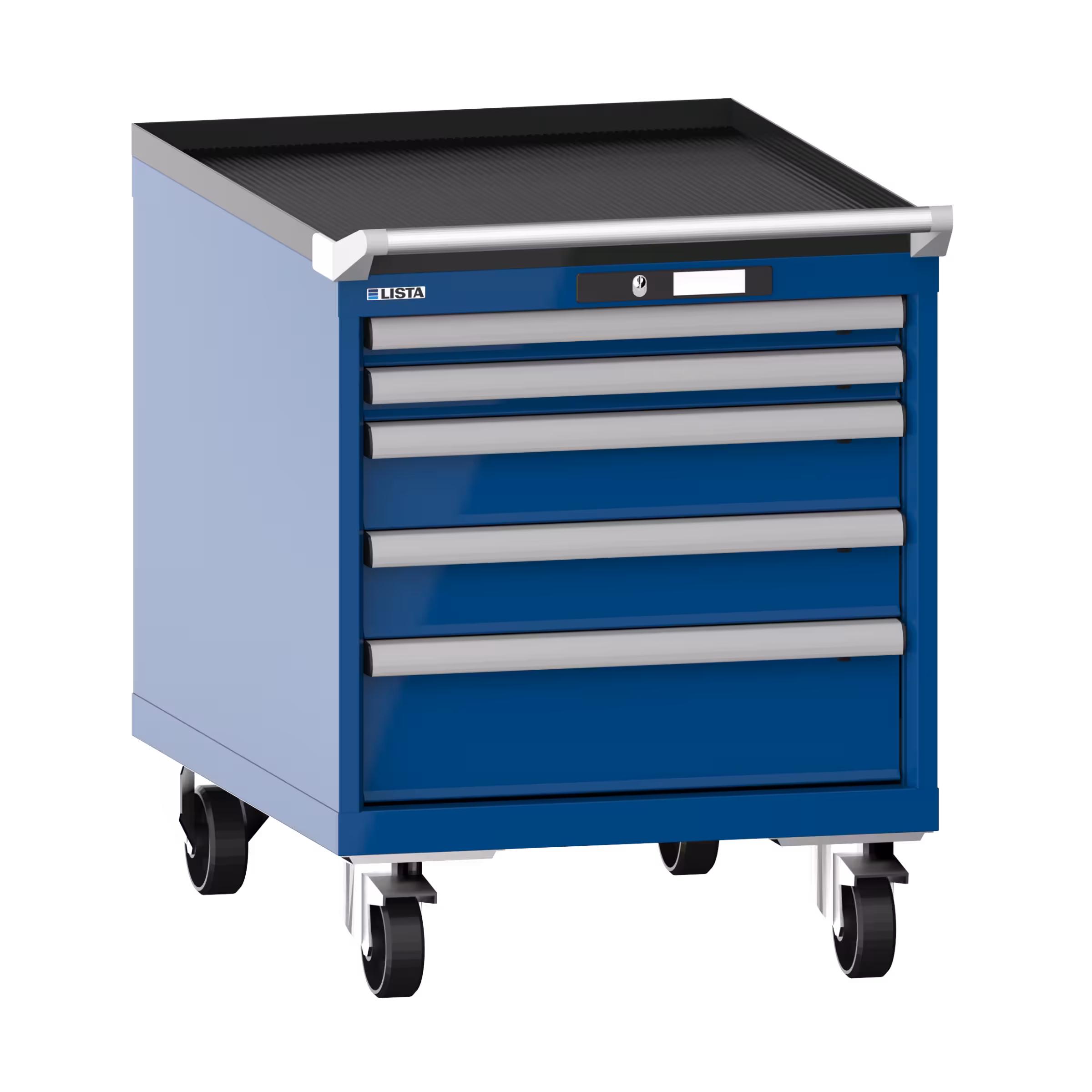 Armario de cajones móviles 27x36E (AxPxA) 564x725x723mm 5 cajones (2x50/2x100/1x150) 75kg ruedas de nailon Ø100mm KEY Lock Azul señales RAL 5005
