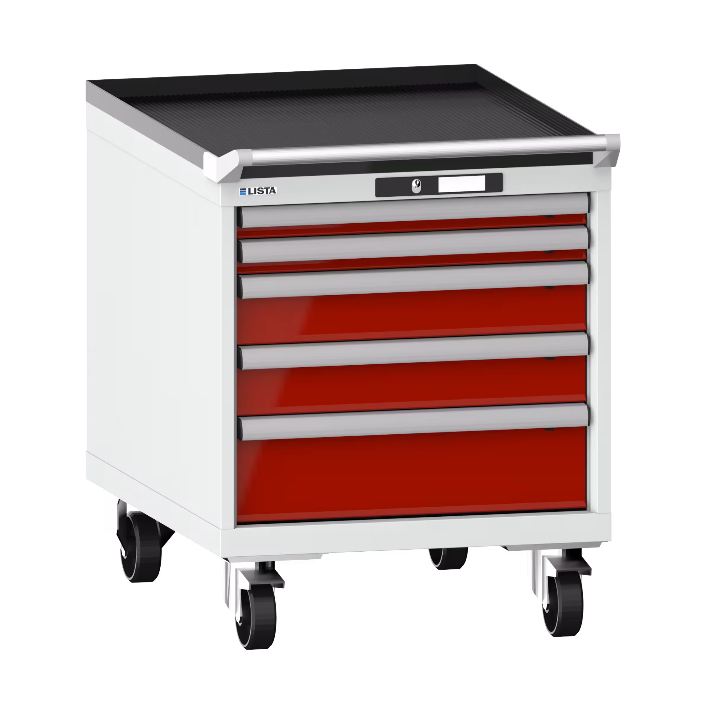 mediante agujeros preperforados para encimeras de mesa (perforado), ruedas, cajones y sistemas de cierre para un fácil reequipamiento