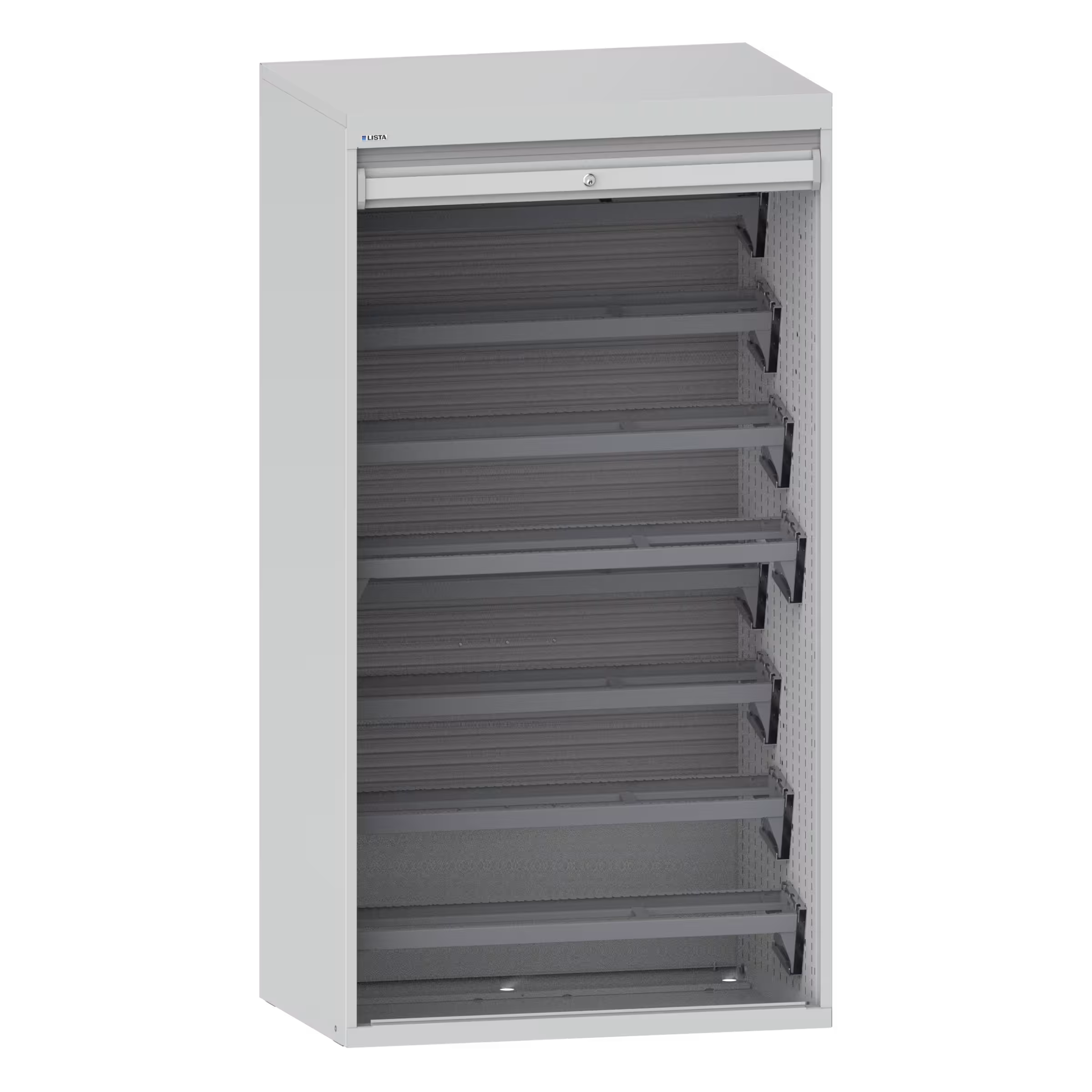Armario de herramientas con persiana 54x27E (AxPxA) 1038x691x1950mm 8 bandeja portaconos, sin portaherramientas KEY Lock Gris claro NCS S 2000-N