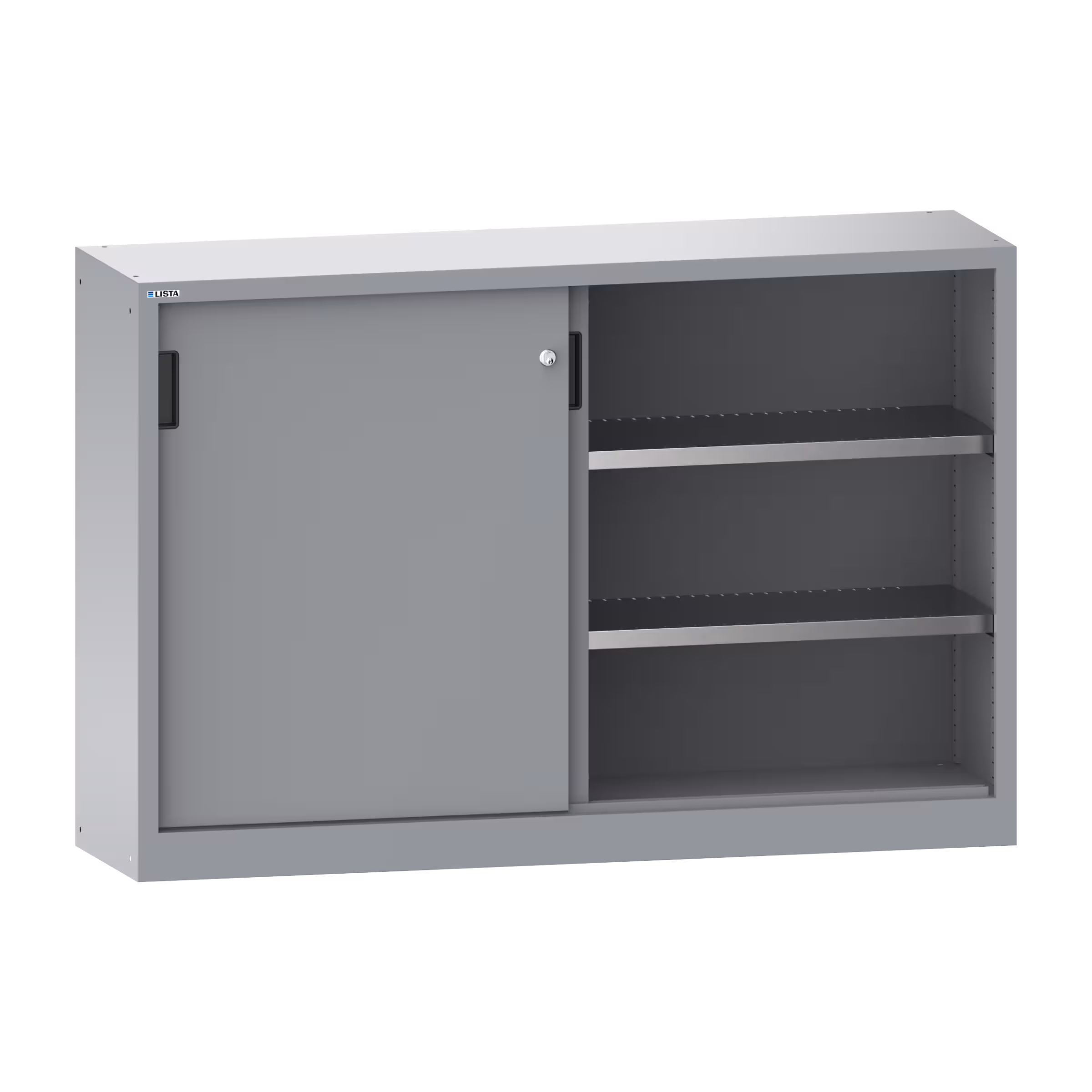 Armario de puerta corredera con 2 puertas de chapa maciza y panel de separación (AxPxA) 1500x400x1000mm 4 estantes regulables KEY Lock Gris cenzia NCS S 4502-B