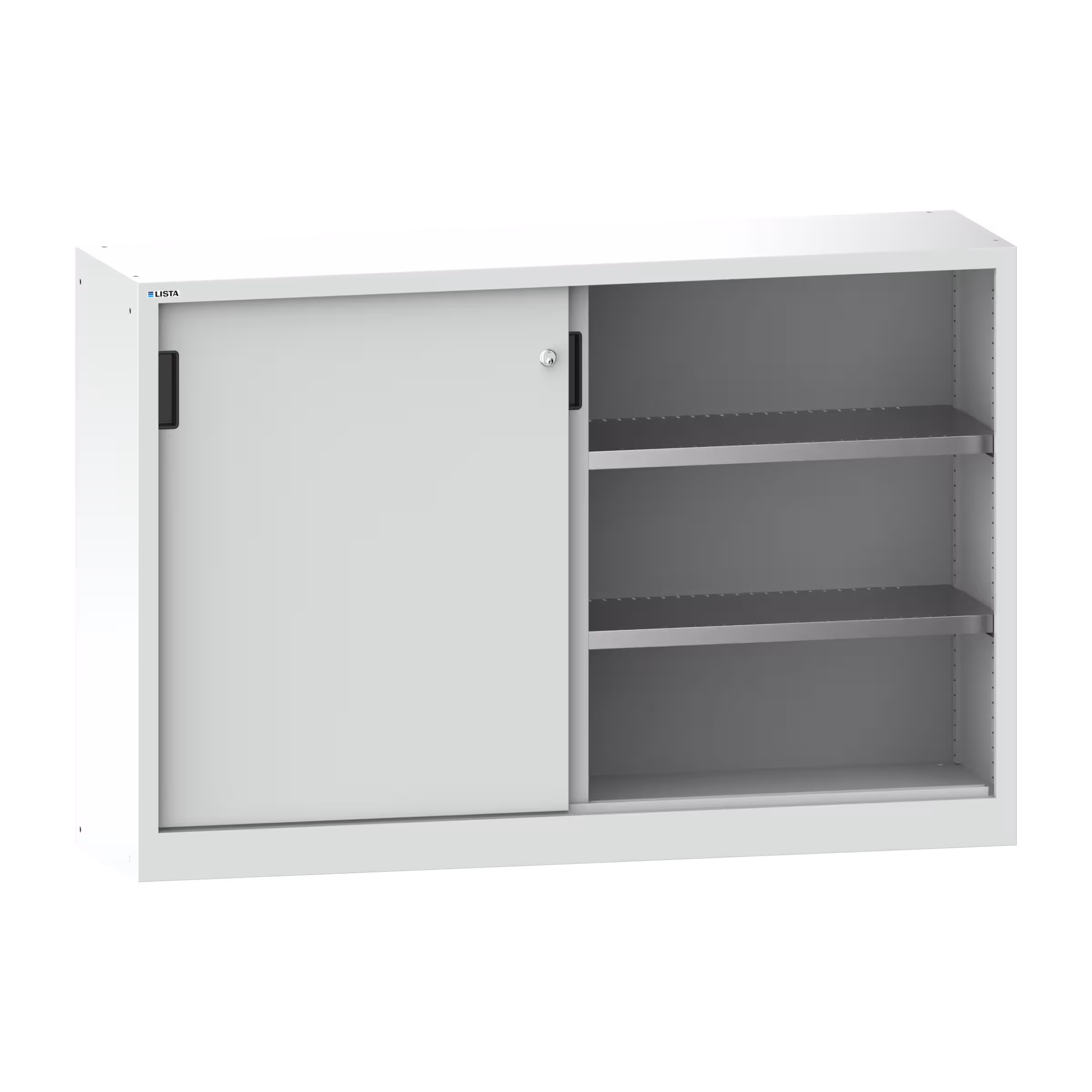 Armario de puerta corredera con 2 puertas de chapa maciza y panel de separación (AxPxA) 1500x400x1000mm 4 estantes regulables KEY Lock Gris claro NCS S 2000-N