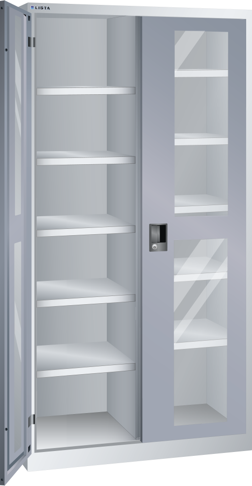 Armario de puertas batientes con 2 puertas con ventanas bisagra y panel de separación (AxPxA) 1000x580x1950mm 10 estantes regulables RFID Lock Gris luminoso RAL 7035 / Gris metalizado NCS S 6502-B