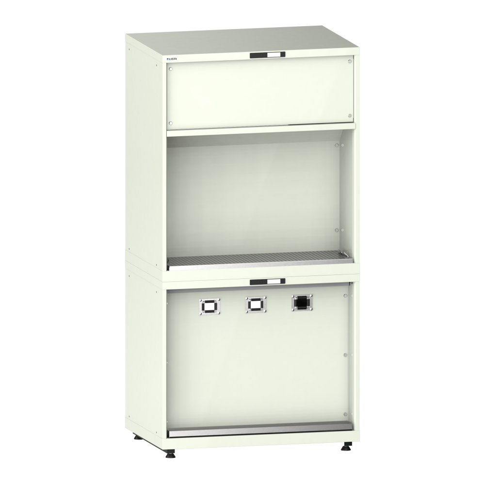 Pies de nivelación: todos los módulos adicionales de taller están equipados con cuatro pies de nivelación por módulo con un área de ajuste de 45 - 90 mm. Los pies de nivelación sirven de compensación en suelos irregulares y sirven de protección contra la humedad.