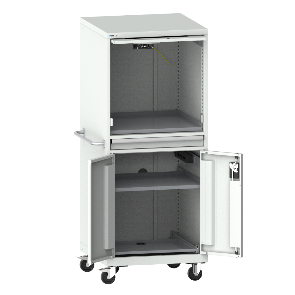 Armarios para ordenador: El ordenador, el hardware y el software se deben proteger del polvo, la suciedad y el acceso no autorizado en el área de la producción. Con el armario para ordenador de LISTA, se dispone de una solución segura y probada.