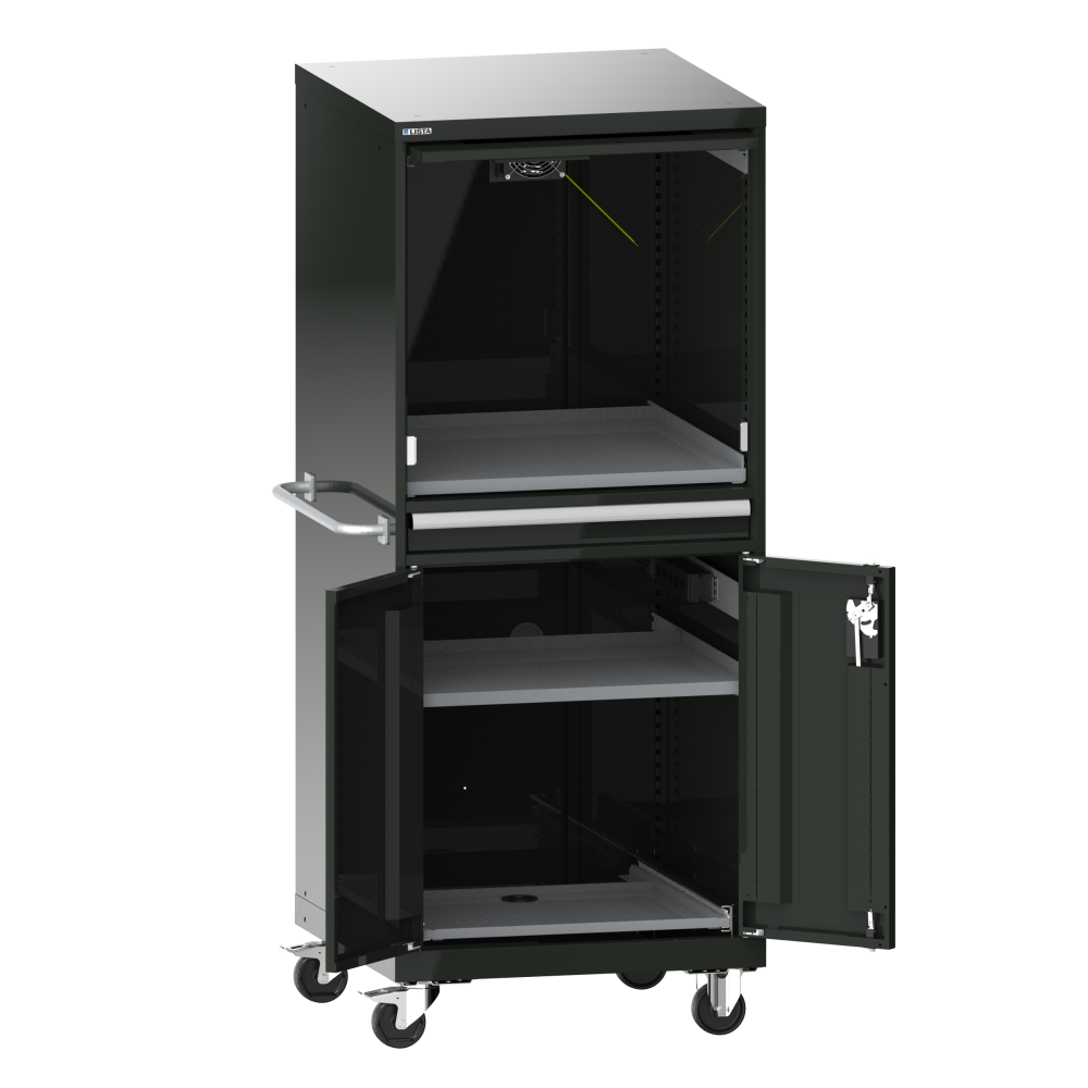 Armarios para ordenador: El ordenador, el hardware y el software se deben proteger del polvo, la suciedad y el acceso no autorizado en el área de la producción. Con el armario para ordenador de LISTA, se dispone de una solución segura y probada.