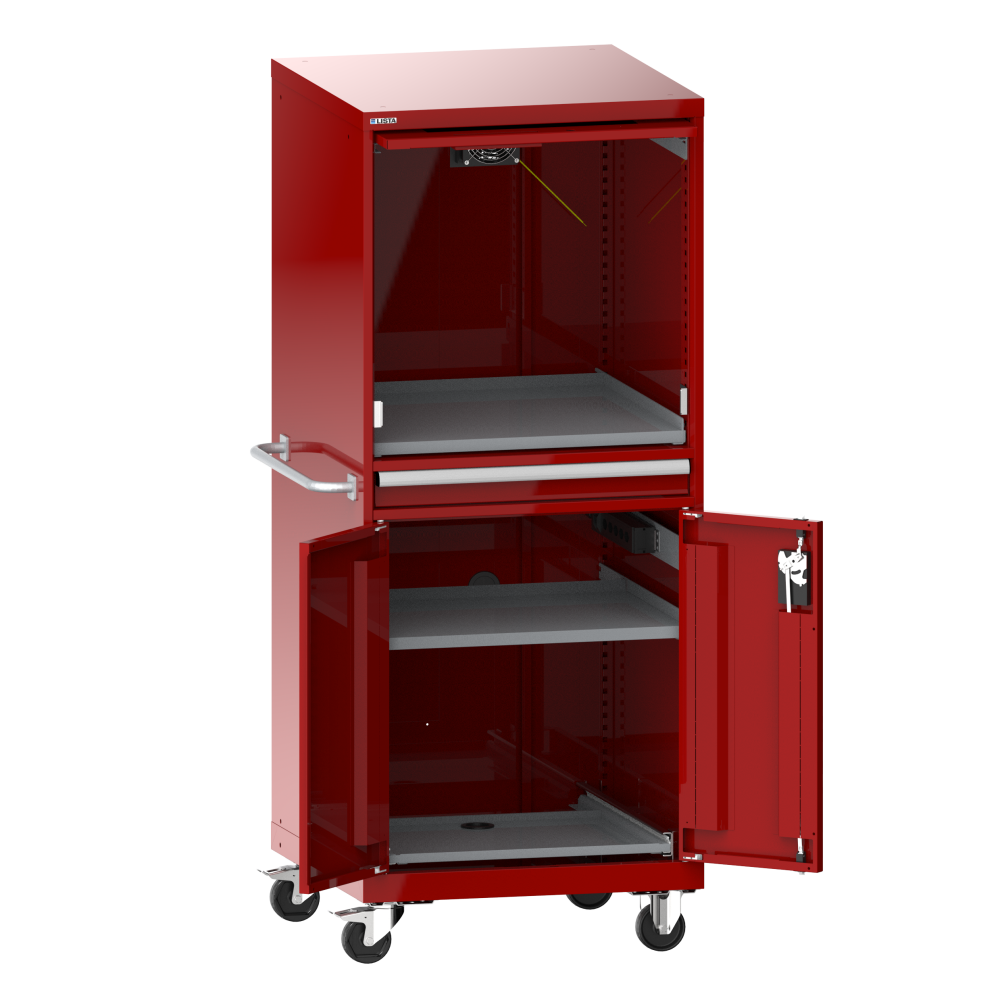 Armarios para ordenador: El ordenador, el hardware y el software se deben proteger del polvo, la suciedad y el acceso no autorizado en el área de la producción. Con el armario para ordenador de LISTA, se dispone de una solución segura y probada.