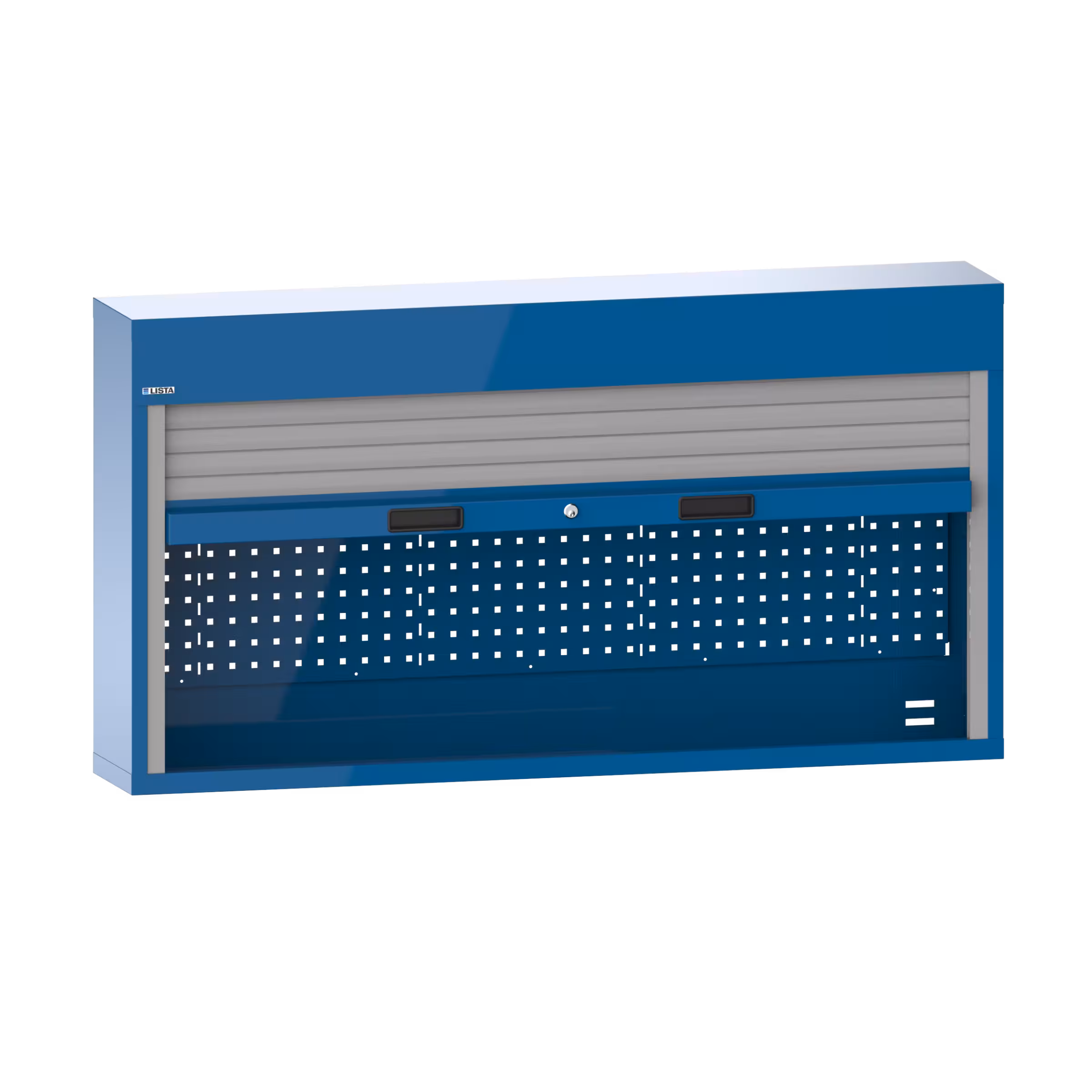 Armario suspendido con persiana (AxPxA) 1500x250x800mm incl. material de fijación para panel posterior perforado en montante, KEY Lock Azul capri RAL 5019