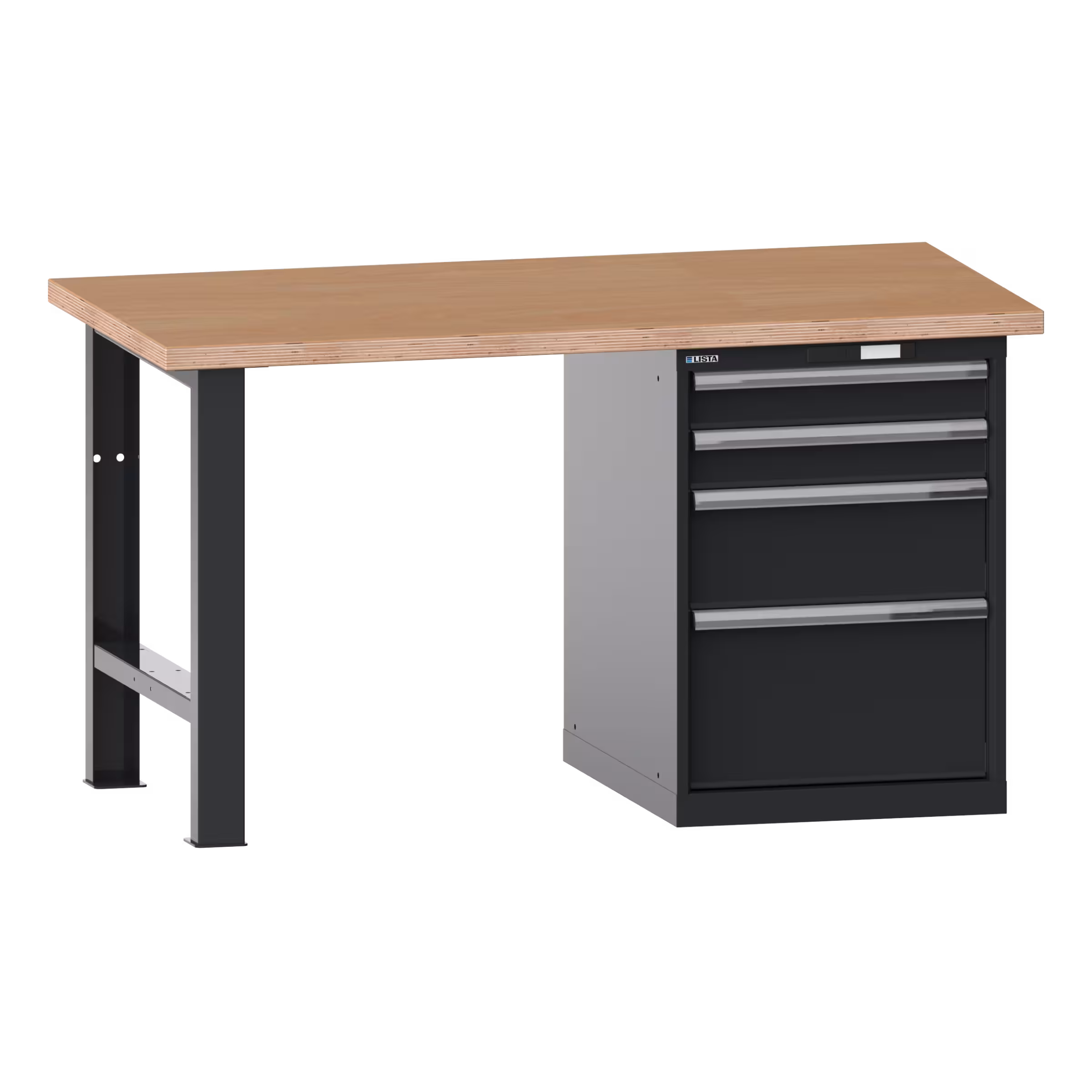 Banco de trabajo 27x36E (AxPxA) 1500x750x840mm 4 cajones (2x100/1x200/1x300) 75kg multiplex KEY Lock Gris antracita RAL 7016