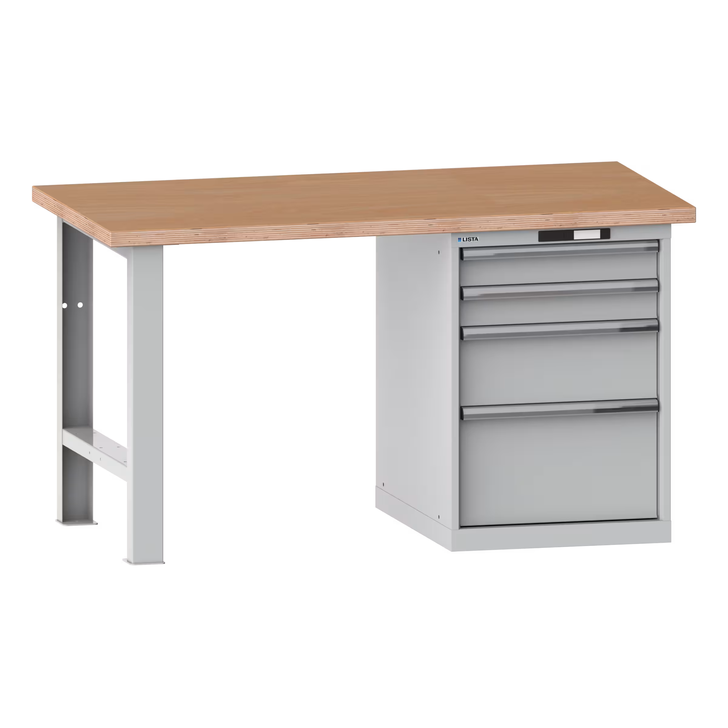 Banco de trabajo 27x36E (AxPxA) 1500x750x840mm 4 cajones (2x100/1x200/1x300) 75kg multiplex KEY Lock Gris claro NCS S 2000-N