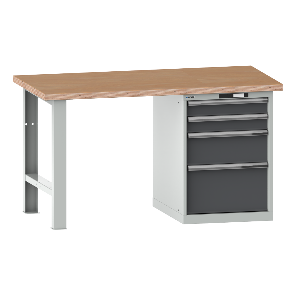 Banco de trabajo 27x36E (AxPxA) 2000x750x840mm 4 cajones (2x100/1x200/1x300) 75kg multiplex KEY Lock Gris luminoso RAL 7035/Gris metalizado NCS S 6502-B
