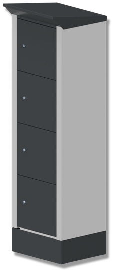 Pintura en polvo de resina de poliéster de alta calidad con una elevada resistencia a la luz y a la intemperie, bastidor de armario y componentes eléctricos con protección contra salpicaduras de agua IP44 según DIN EN 60529, techo inclinado con saliente delantero como protección contra la lluvia