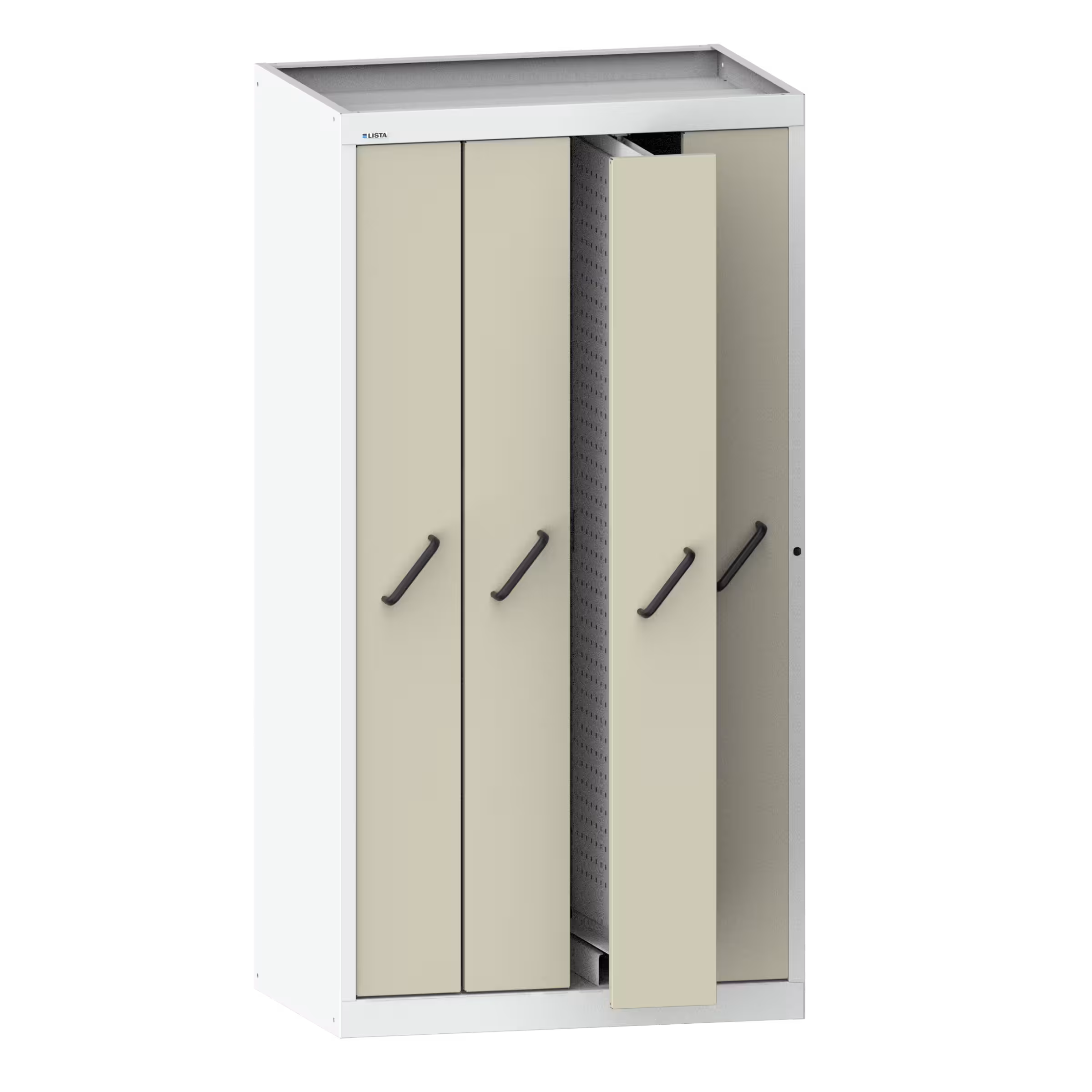 Armoire à extension verticale avec panneaux de façades (LxPxH) 1000x695x1950mm 4 extensions avec paroi arrière perforée Gris clair RAL 7035 / Gris gravier RAL 7032