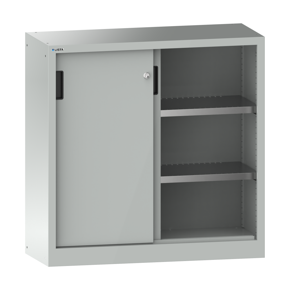 Armoire à portes coulissantes avec 2 portes en tôle pleine (LxPxH) 1000x400x1000mm 2 rayons KEY Lock Gris clair RAL 7035